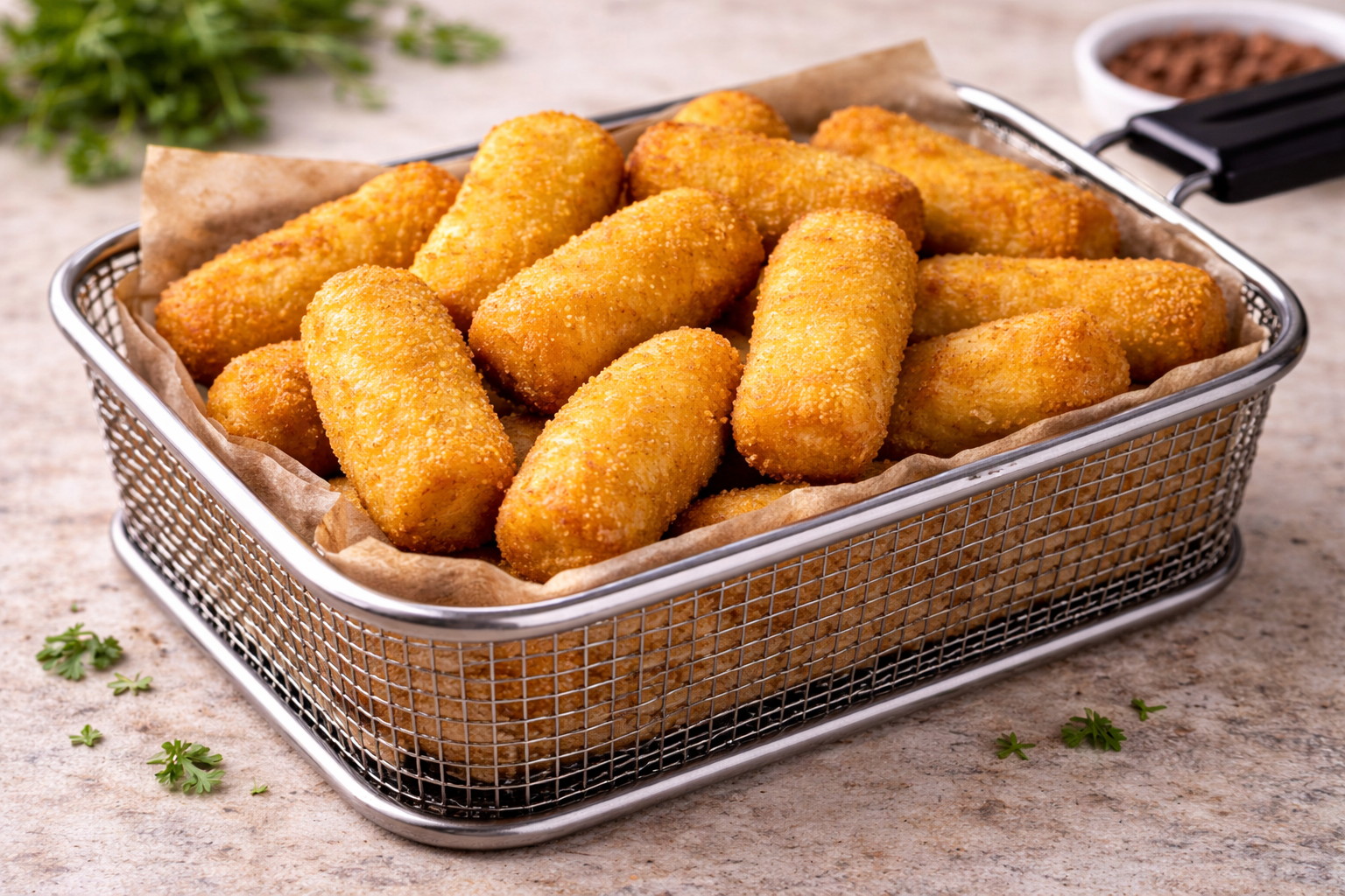 panírozott camembert cikkelyek eredeti áfonyalekvárral és burgonyakrokettel