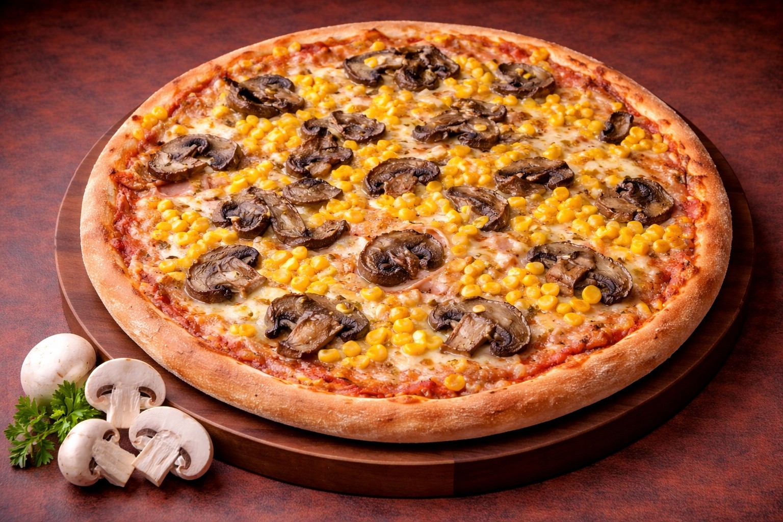paradicsomos alap, mozzarella, szalámi, kukorica