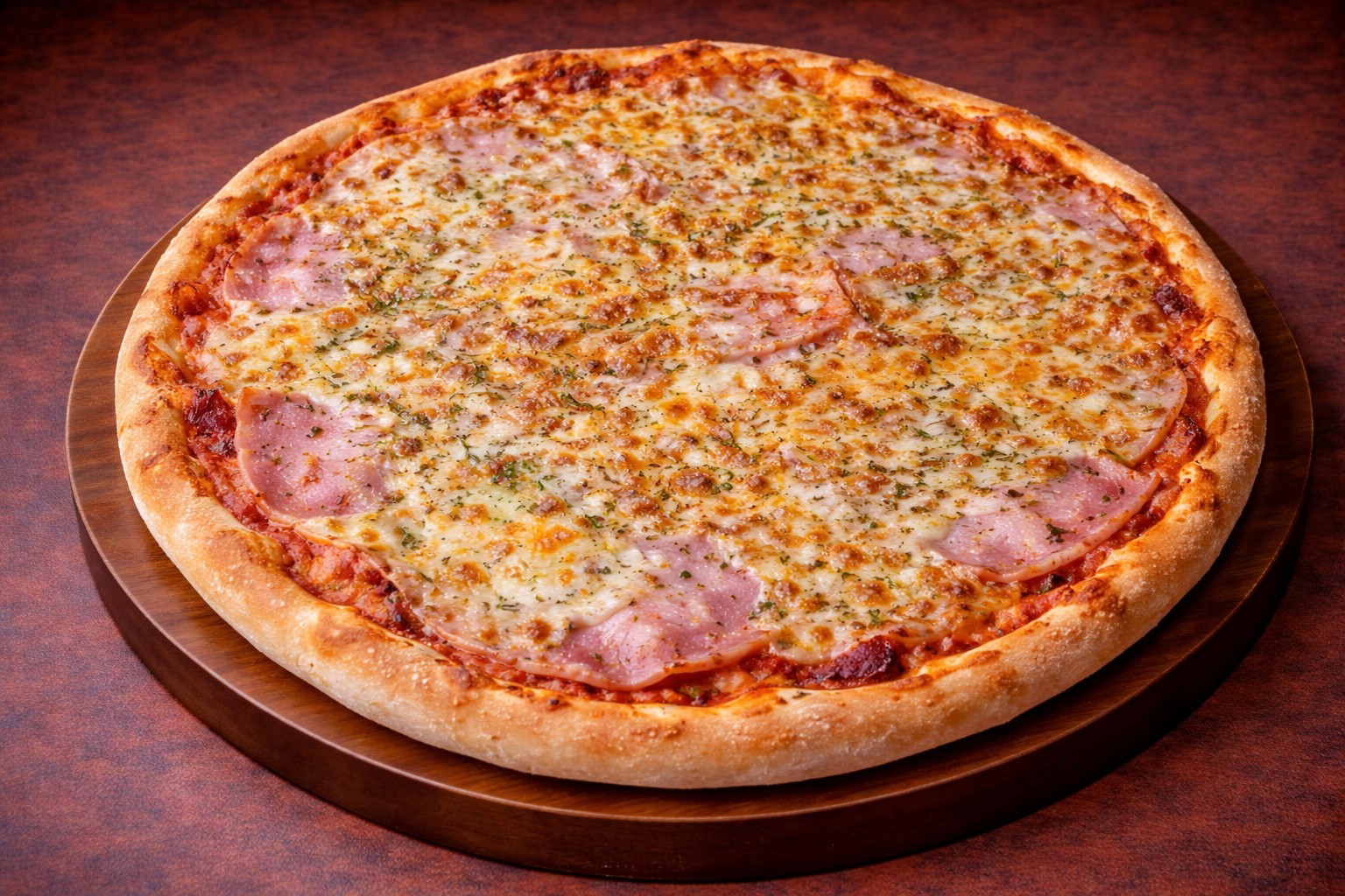 paradicsomos alap, sonka, mozzarella, bacon, oregánó
