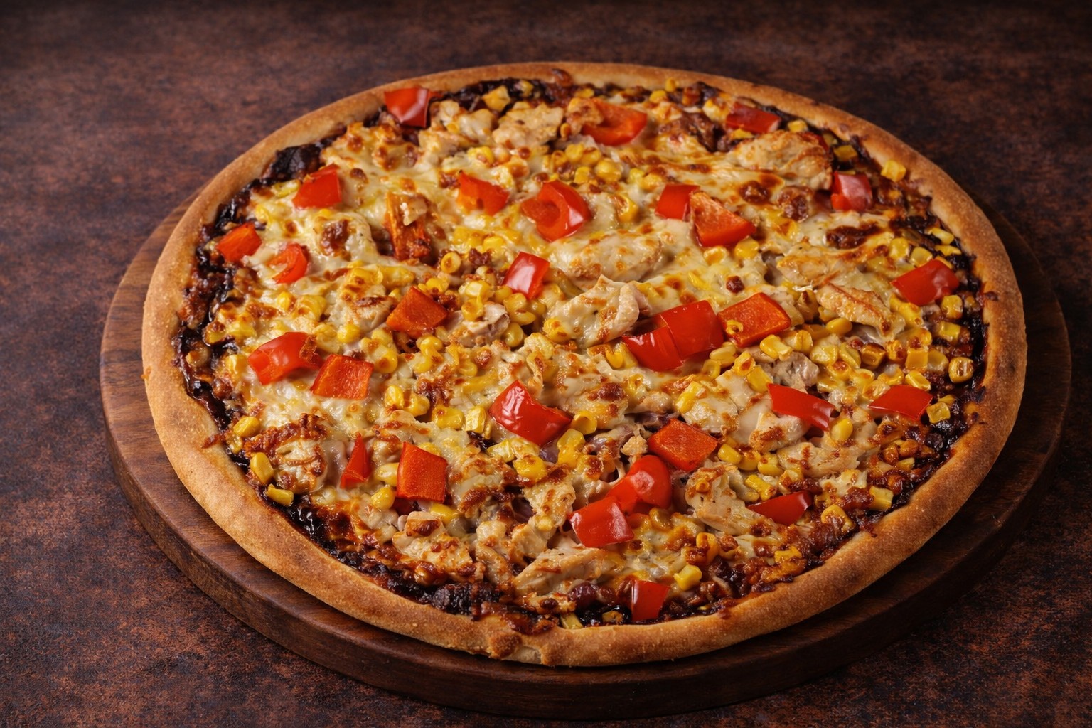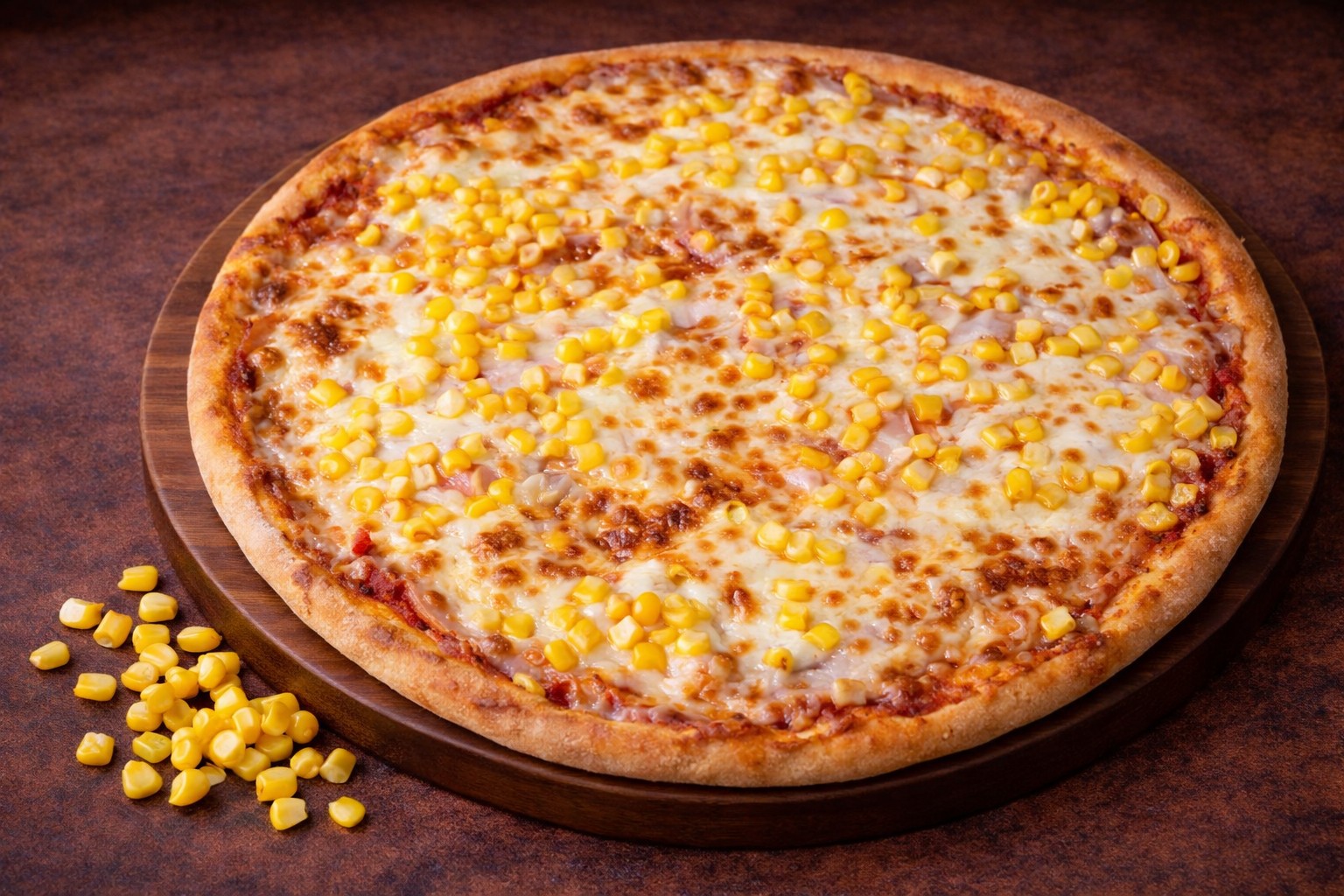 paradicsomos alap, sonka, mozzarella, kukorica