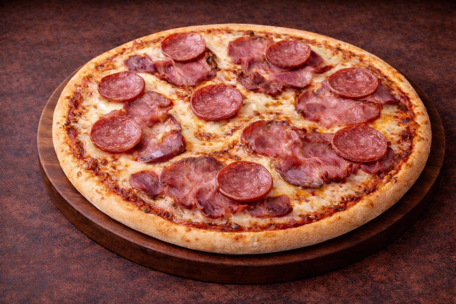 csípős paradicsomos alap, mozarella, szalámi, bacon, lila hagyma, gomba, jalapeno
