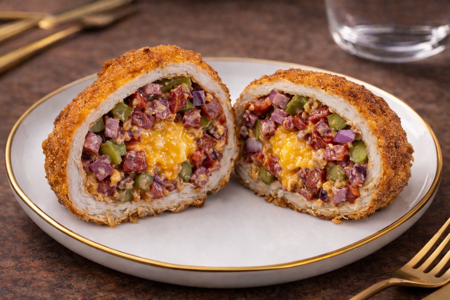 lilahagymalekvárral, jalapenoval, cheddar sajttal, sajttal, mézes mustárral töltött szelet